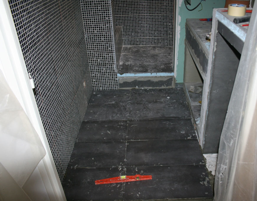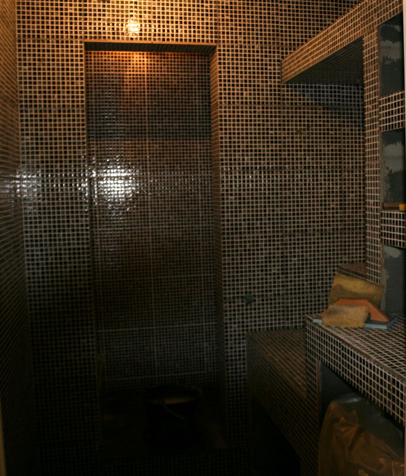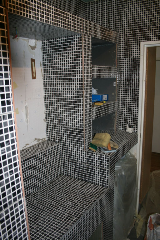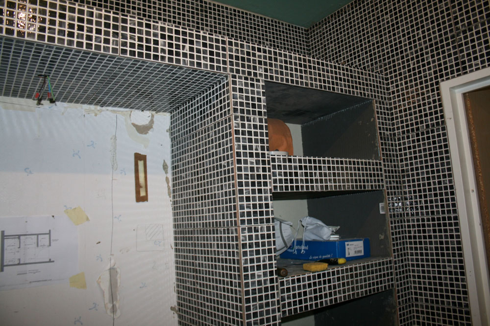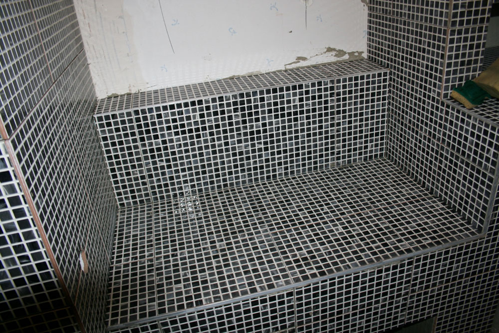 Réalisation d’une salle de bain entièrement carrelée en mosaique